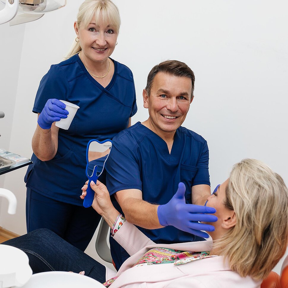 Łączymy kompetencje lekarzy różnych specjalizacji z doświadczeniem wykwalifikowanych asystentek, które towarzyszą pacjentowi na każdym etapie leczenia. Dzięki temu proces terapeutyczny przebiega płynnie, przewidywalnie i w atmosferze pełnego zaopiekowania. Każdy etap jest przemyślany, a pacjent prowadzony spokojnie, bez presji i zbędnego stresu.