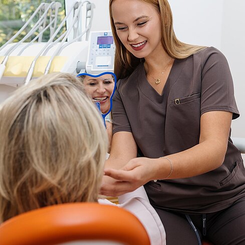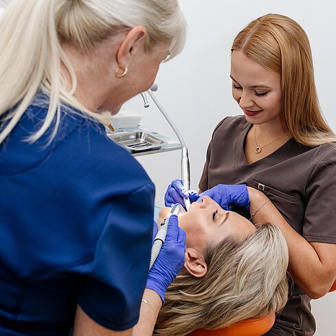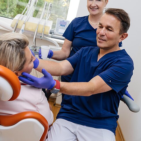 Pracujemy zespołowo, łącząc wiedzę lekarzy różnych specjalizacji z doświadczeniem wykwalifikowanych asystentek, które odgrywają kluczową rolę w komforcie i płynności leczenia. Każdy etap terapii jest efektem współpracy, planowania i wzajemnego zaufania w zespole, co pozwala prowadzić pacjenta w sposób spójny, uporządkowany i przewidywalny.