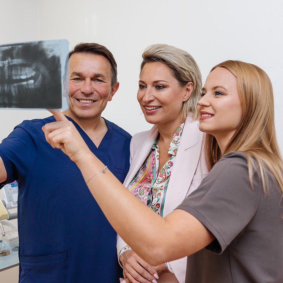 Dla nas najlepsza stomatologia to harmonijne połączenie najwyższych kompetencji medycznych z ludzkim podejściem. To umiejętność słuchania, spokojnego tłumaczenia i prowadzenia pacjenta w sposób jasny i przewidywalny. Tak, aby mógł czuć się zaopiekowany, rozumiany i pewny podejmowanych decyzji – dziś i w przyszłości.